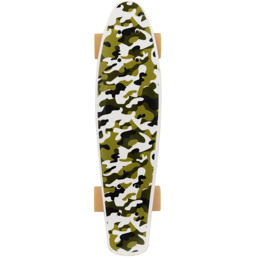 Скейтборд в цвете хаки выглядит современно на фоне других, рассчитан на грузоподъемность в 80 кг, имеет размеры 22″ (56*15 см), достаточные для размещения обеих стоп. Пластиковая дека, полиуретановые колеса и алюминиевая подвеска обещают пользователям долговечность и длительное сохранение первоначальных характеристик. Товар представлен компактными эргономическими характеристиками, легкий по весу. Поэтому вопросов с самостоятельной транспортировкой у детей не возникнет.