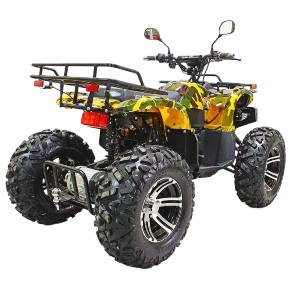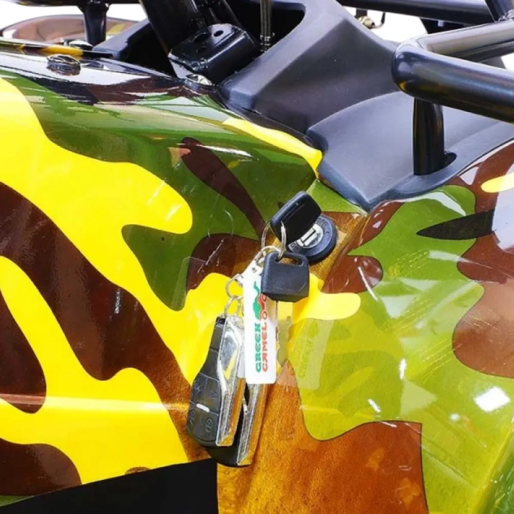 Выносливый, мощный, напористый – это всё про GreenCamel Sahara A3400 4x4. Прекрасная модель квадроцикла с впечатляющими характеристиками. Во многом он не уступит, а то и превзойдёт, целый ряд квадроцикл. Его внешний вид не оставит вас равнодушным. Он сочетает в себе агрессивность форм с яркой покраской в стиле армейского камуфляжа – настоящий стальной зверь.