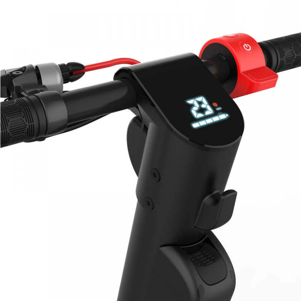 Управление электросамокатом происходит через специальную панель, расположенную на руле – тут отображаются все необходимые для поездки данные (скорость, время в пути, уровень заряда батареи). Затормозить или изменить скорость можно путем нажатия на соответствующие кнопки. Также есть функция самостоятельной установки предельно допустимой скорости – для уменьшения энергопотребления и увеличения длительности поездки.