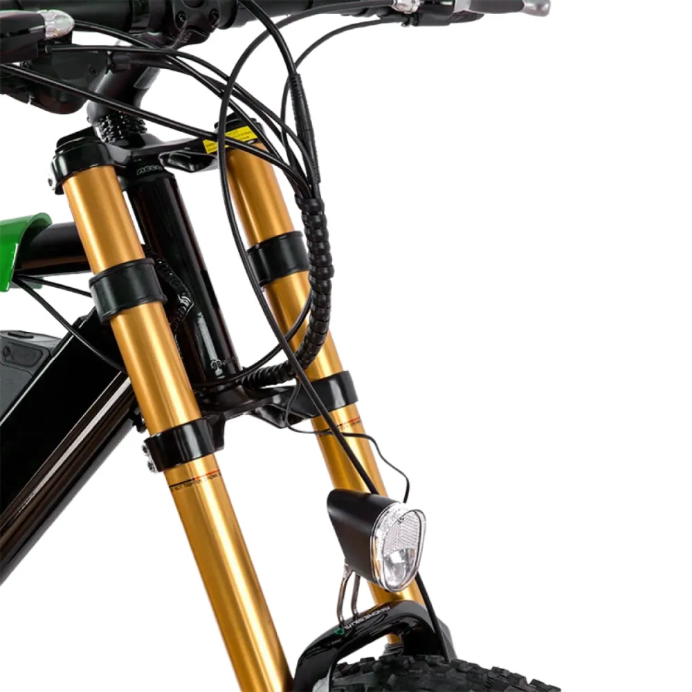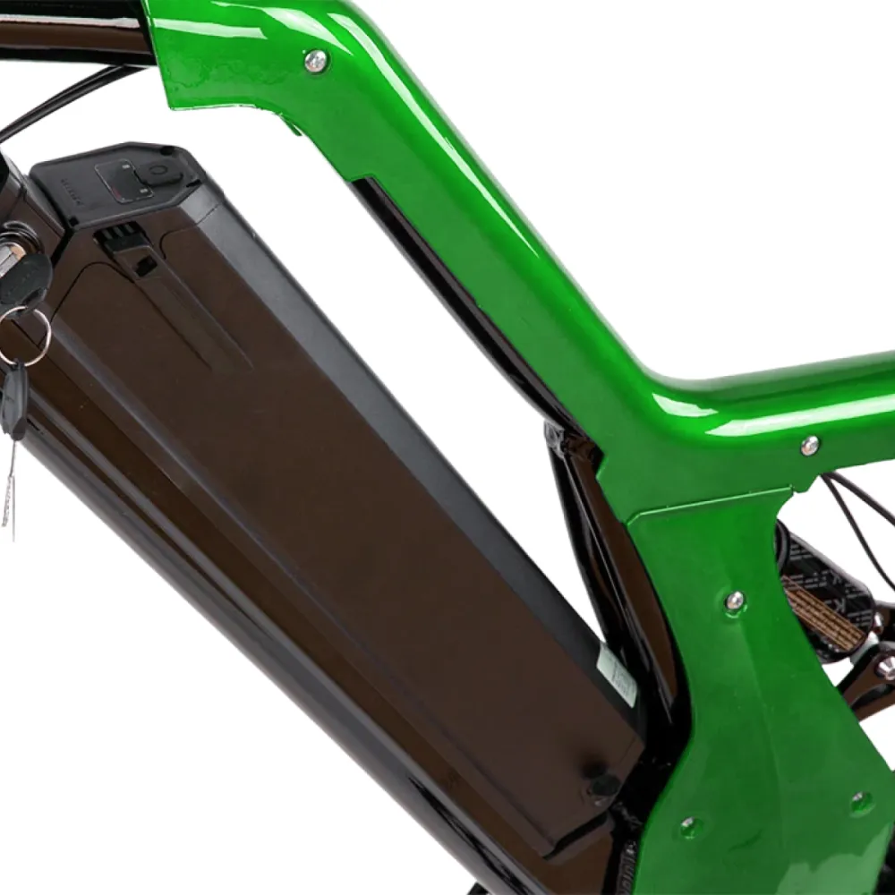 При мощности двигателя 1500 Вт электровелосипед без труда развивает скорость до 52 км/час, и на одной подзарядке преодолевает до 100 км пути. Половинчатая ручка управления скоростью предназначена для удобного переключения 1 из 8 скоростных режимов.