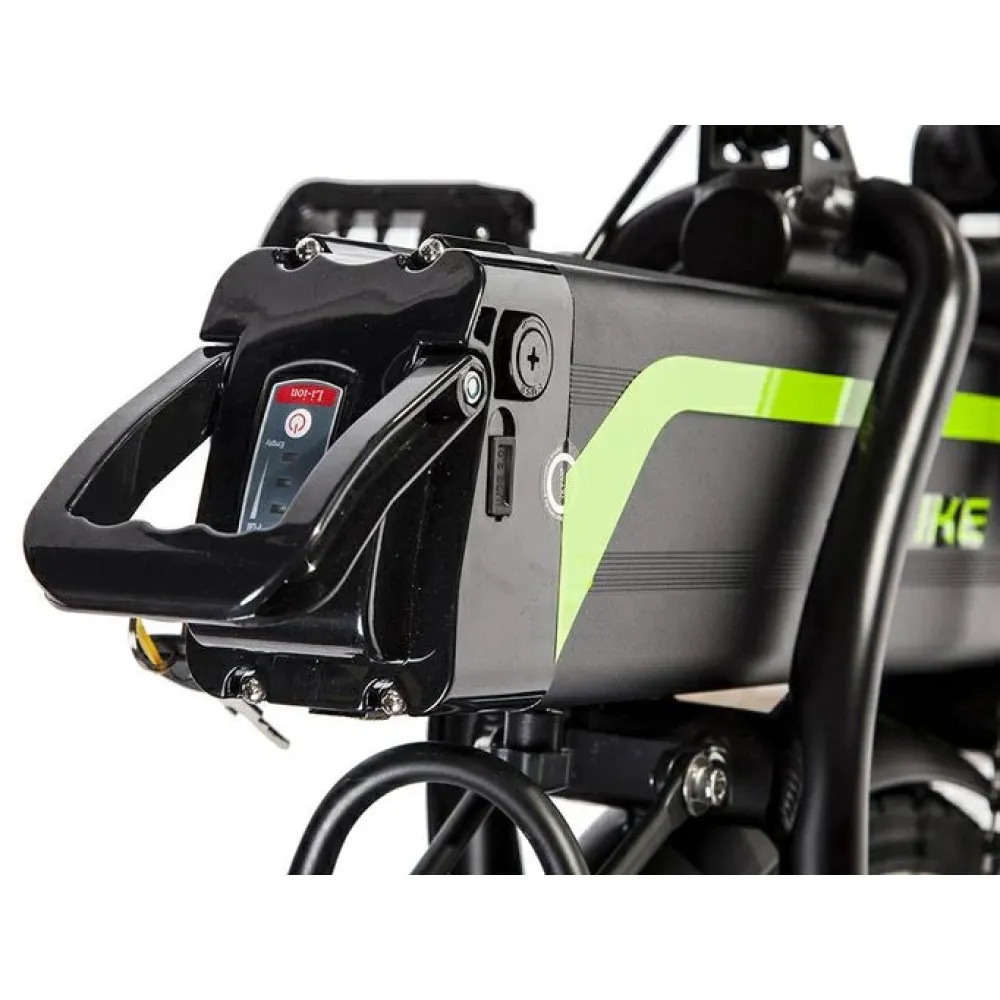 Накатистые устойчивые 20–дюймовые колеса в сочетании с емкой батареей обещают активное и безопасное времяпрепровождение. Передние и задние амортизаторы сглаживают движение по кочкам, делают его плавным. Батарея размещена за седлом. Надежно защищена от воздействия негативных факторов. 6-скоростной режим регулируется с помощью рычага. Мягкое компактное седло регулируется по высоте, удобно при длительной езде. Бортовой компьютер позволяет отслеживать скоростные параметры, степень заряда батареи и другие характеристики.