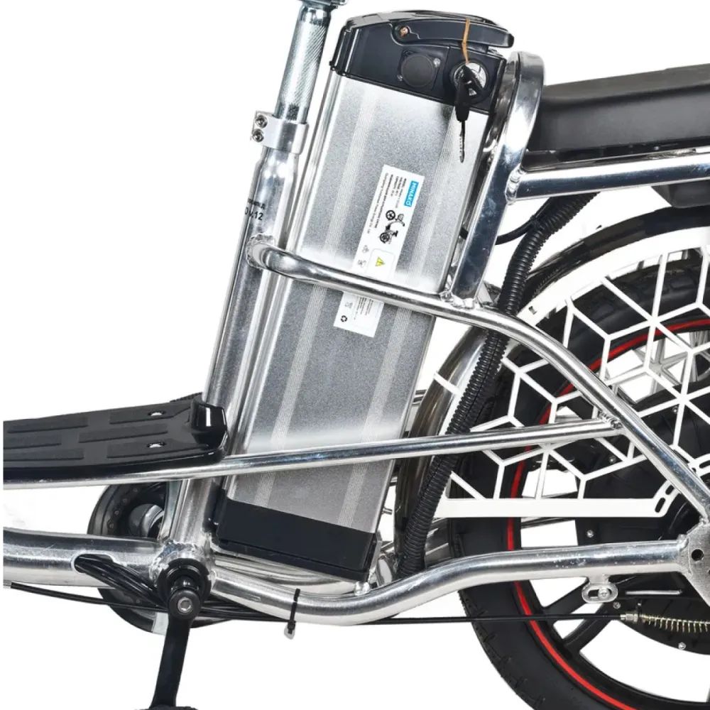 Техника оснащена фирменным двигателем мощностью 500 Вт. Увеличение скоростных характеристик до 50 км/час и повышение пробега возможно благодаря переходу на педальным режим. Широкие внедорожные шины рассчитаны для лучшего сцепления с дорожной поверхностью и движения по трассе с любым покрытием. Усиленная алюминиевая рама обеспечивает максимальную нагрузку 140 кг. Вместительная корзина на руле и усиленный багажник позволяют свободно перевозить личные вещи и покупки.