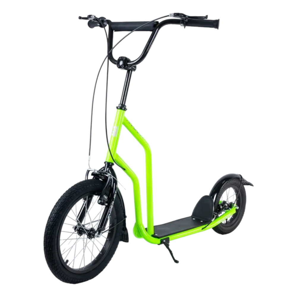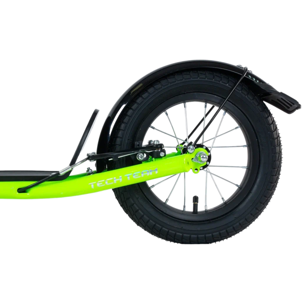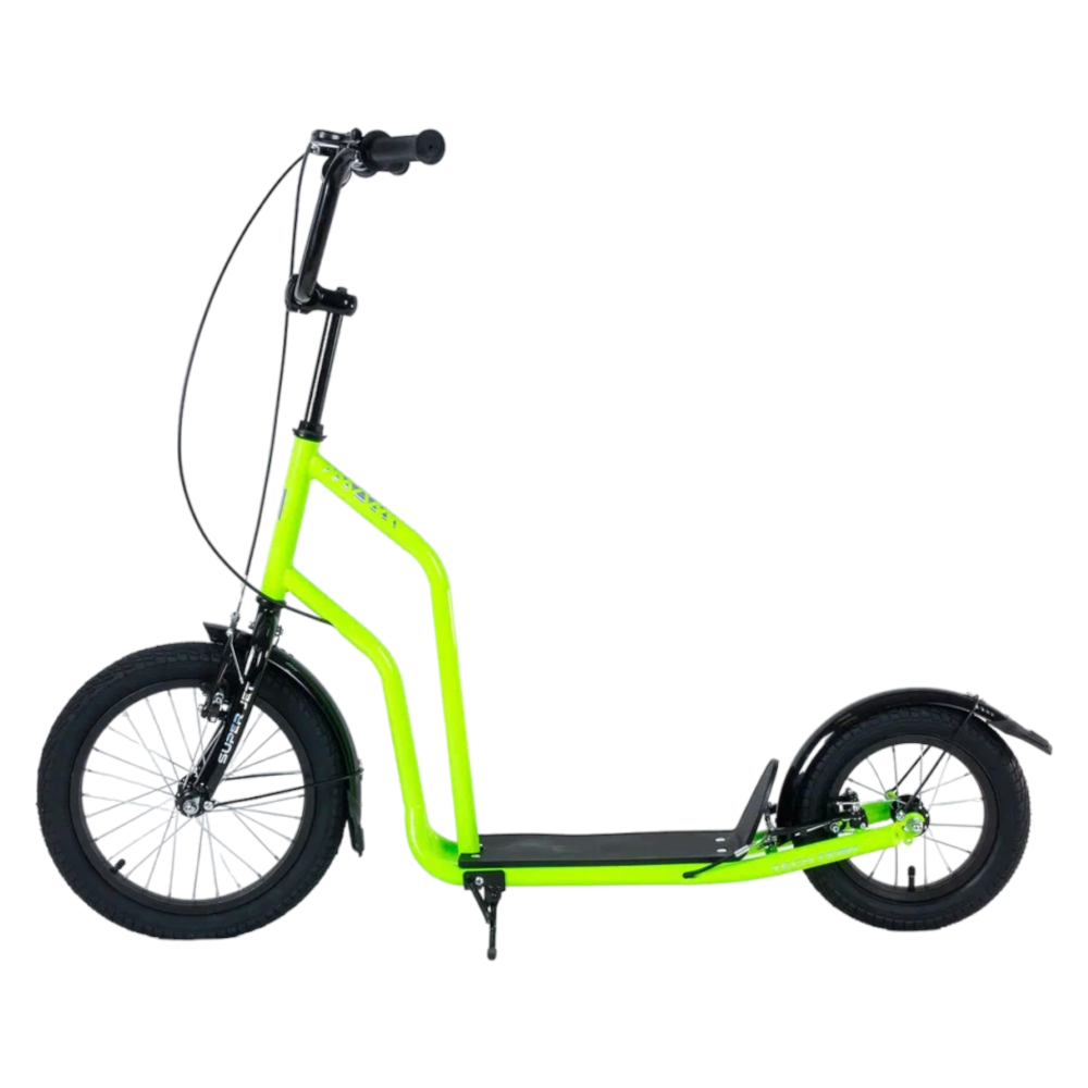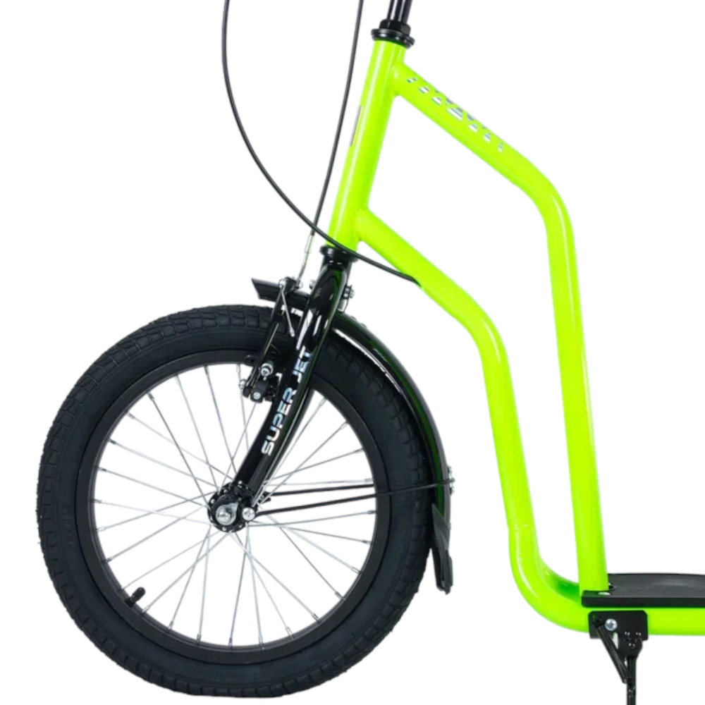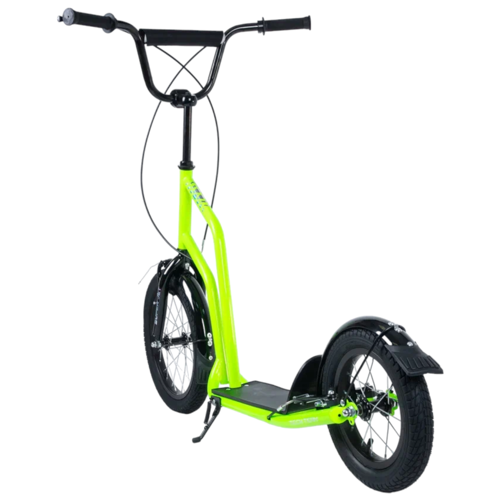 Самокат Tech Team Super Jet 700 2024 года в ярком салатовом цвете - это идеальный выбор для городских поездок. Его необычный дизайн напоминает велосипед, что делает его уникальным среди других самокатов. Спереди установлено большое колесо диаметром 406 мм, а сзади - поменьше, 305 мм, что обеспечивает отличную устойчивость и маневренность. Ободные тормоза и велосипедный руль с двумя ручками тормоза гарантируют надежное и безопасное управление. Максимальная нагрузка составляет 100 кг, а рама выполнена из легкого алюминия, что делает самокат весом всего 8,1 кг. Этот самокат сочетает в себе стиль, удобство и надежность.