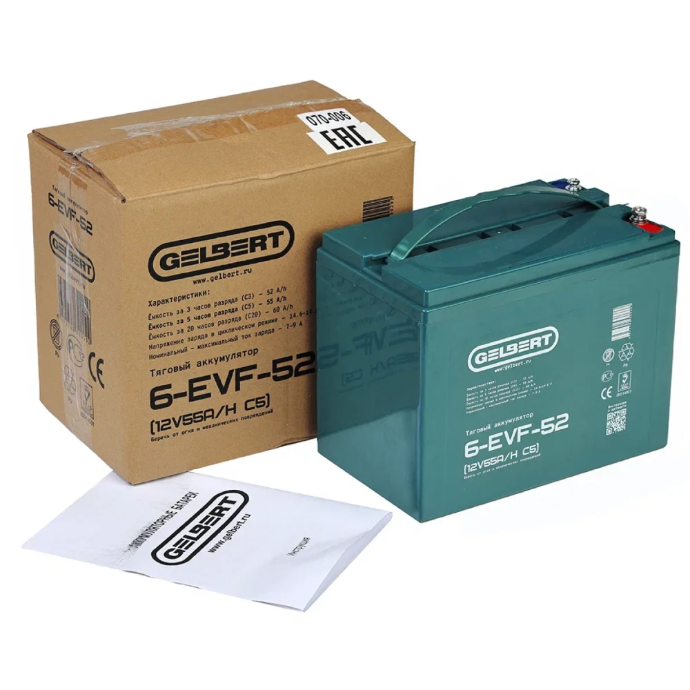 Тяговый аккумулятор Rutrike Gelbert 6-EVF-52 (12V55A/H C5)